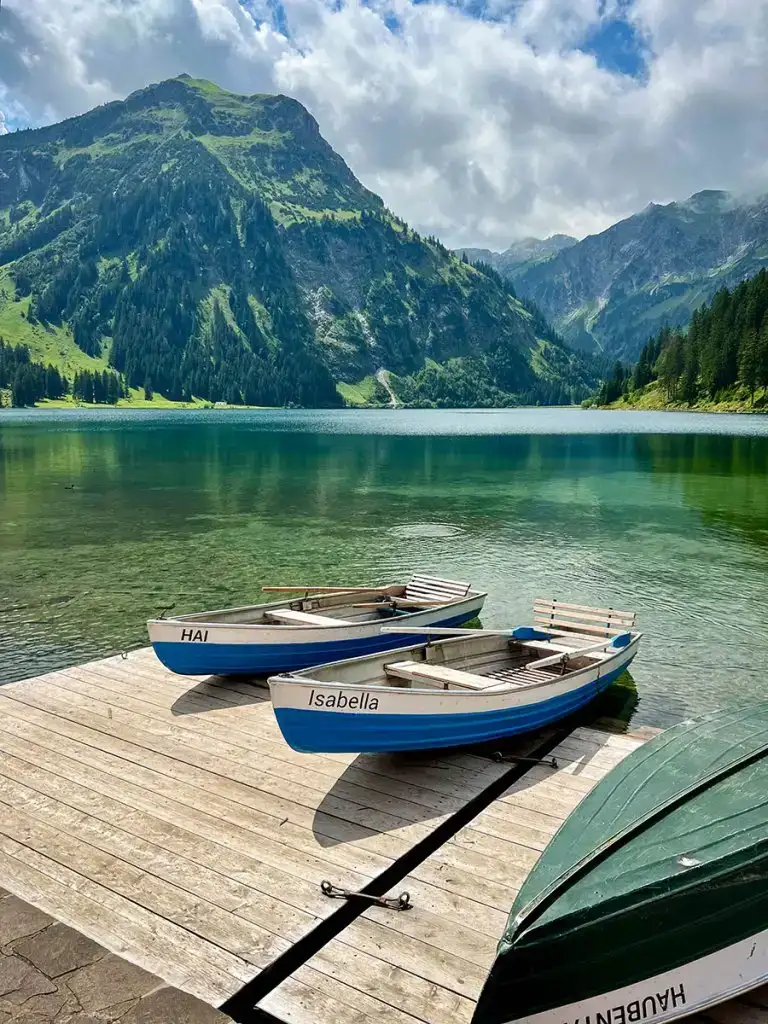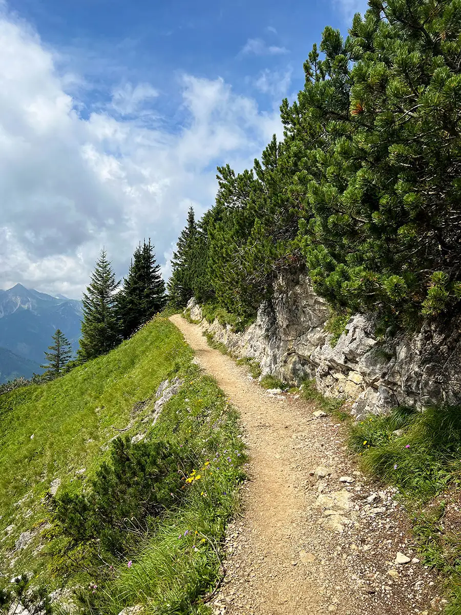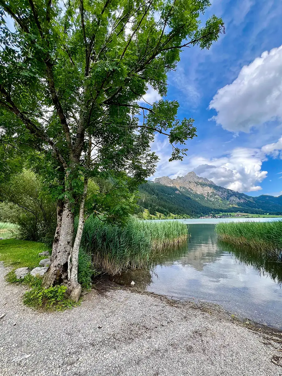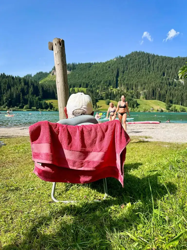 Was auch erwähnt und besonders gelobt werden muss: Das erfrischende Bad im Haldensee und der malerische Vilsalpsee. Und der mit der Gästekarte kostenlose (und von uns viel und gern genutzte) Wanderbus. Und die ebenfalls (einmal am Tag) frei nutzbaren Bergbahnen. Diesen Service weiß man durchaus zu schätzen, so man mit zwei ausgeleierten Sprungfedern unterwegs ist und stramm auf die 60 zugeht. Nun ja. Es ist eben so, wie es ist.