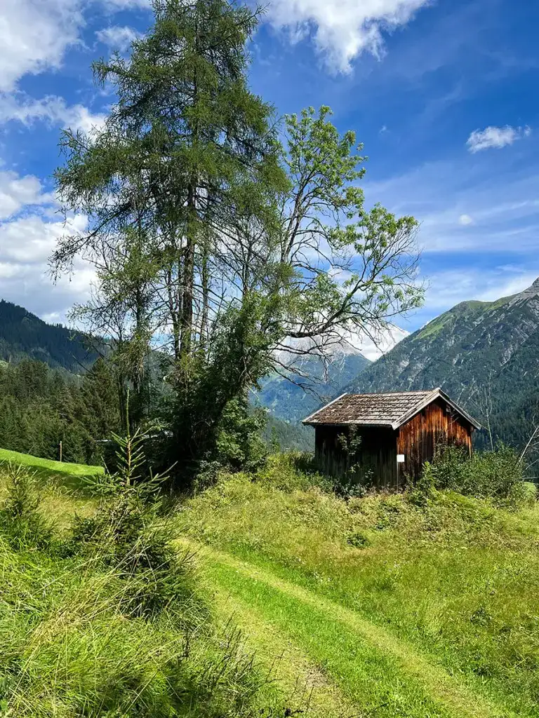 Natürlich war es ein Wanderurlaub. Wir erkundeten die anliegenden Berge in allen Himmelsrichtungen, erklommen zwei Gipfel und besuchten diverse Almen und Wasserfälle, allesamt herzallerliebst und imposant gelegen. Dazu kamen zwei Tage auf dem Rad (im Tannheimer Tal lässt es sich vorzüglich pedalieren) und zwei Ausflüge in das benachbarte Lechtal, um zum Einen den eindrucksvollen alten Gaichtpass zu bestaunen, zum Anderen das wunderschön gelegene Gramais zu besuchen und auch die Hängebrücke in Holzgau noch einmal zu überqueren (alles bei komoot).