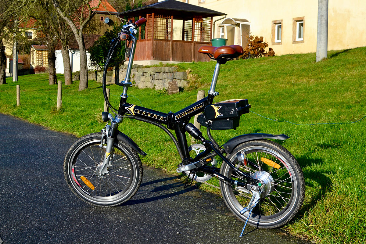 Dieses ist ein B1 36V Elektro-Klapprad. Nicht neu, sondern gebraucht und aus dem Vorjahr. Ausgestattet mit einem Radnabenmotor Antrieb mit 250W Leistung und einem Lithium-Ionen Akku mit 36 V/10 Ah.