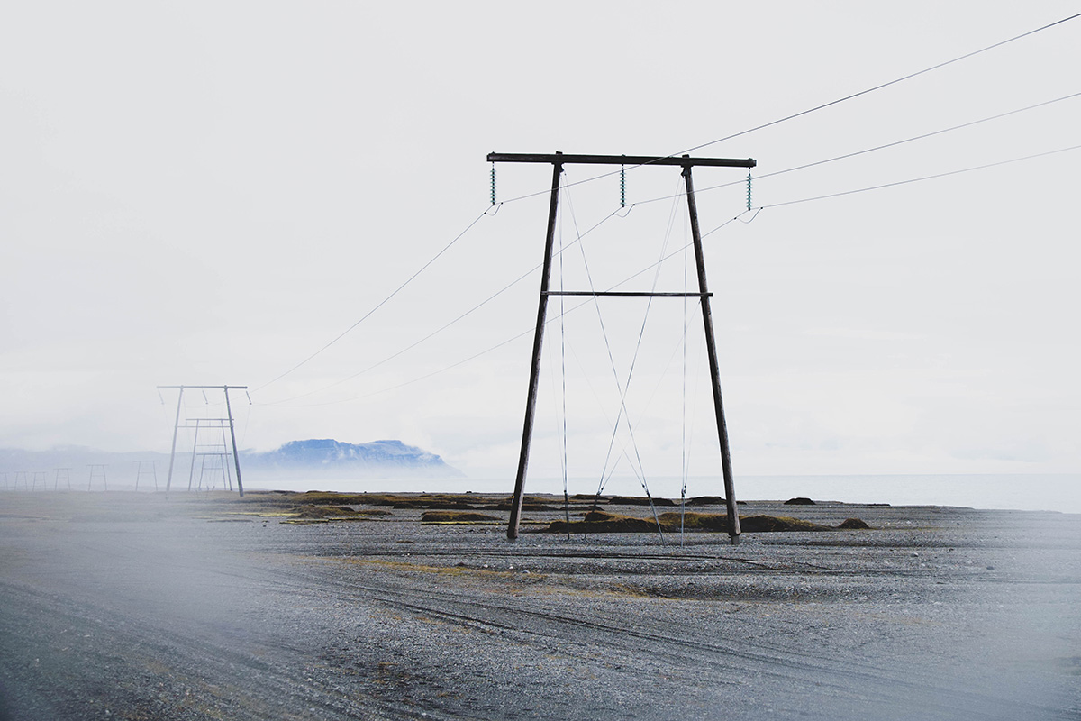 Das heutige Bild zeigt die karge Landschaft an der Südostküste Islands. Rechts und links der Ringstraße erstrecken sich weite, endlos anmutende Geröllwüsten. Die markanten Stromtrassen sind – neben dem oft rabenschwarzen Asphaltband – die einzigen Indizien für eine menschliche Besiedlung dieses Landes.