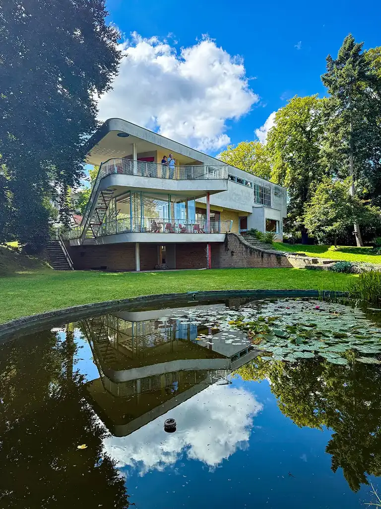 Ich fasse zusammen: Das Haus Schminke in Löbau wurde Anfang der 1930er Jahre von Hans Scharoun für die Familie Schminke gebaut und gilt als eines der wichtigsten Wohnhäuser der Klassischen Moderne. Durch seine geschwungenen Formen, großen Fensterflächen und die enge Verbindung von Innen- und Außenraum erinnert es an ein Schiff, weshalb es den Spitznamen Nudeldampfer erhielt.