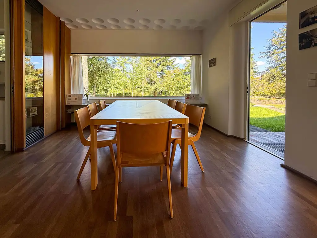 So weit, so gut. Wie dieses ungewöhnliche und mir sehr gefällige Architekturdenkmal einzuordnen ist, wurde bereits einleitend gesagt und ich möchte das noch einmal unterstreichen: Architekt Hans Scharoun hat hier nicht nur ein Haus entworfen, sondern ein Wohnkonzept, das seiner Zeit weit voraus war: offene, fließende Räume, viel Licht, die enge Verbindung von Haus und Garten und eine Architektur, die an ein Schiff erinnert. Es ist als solches ein Stück Architekturgeschichte zum Anfassen und ein faszinierendes Muss für interessierte Menschen, die sich zum Zwecke der Erbauung und Erholung – allen Vorurteilen zum Trotz – in die Oberlausitz begeben.