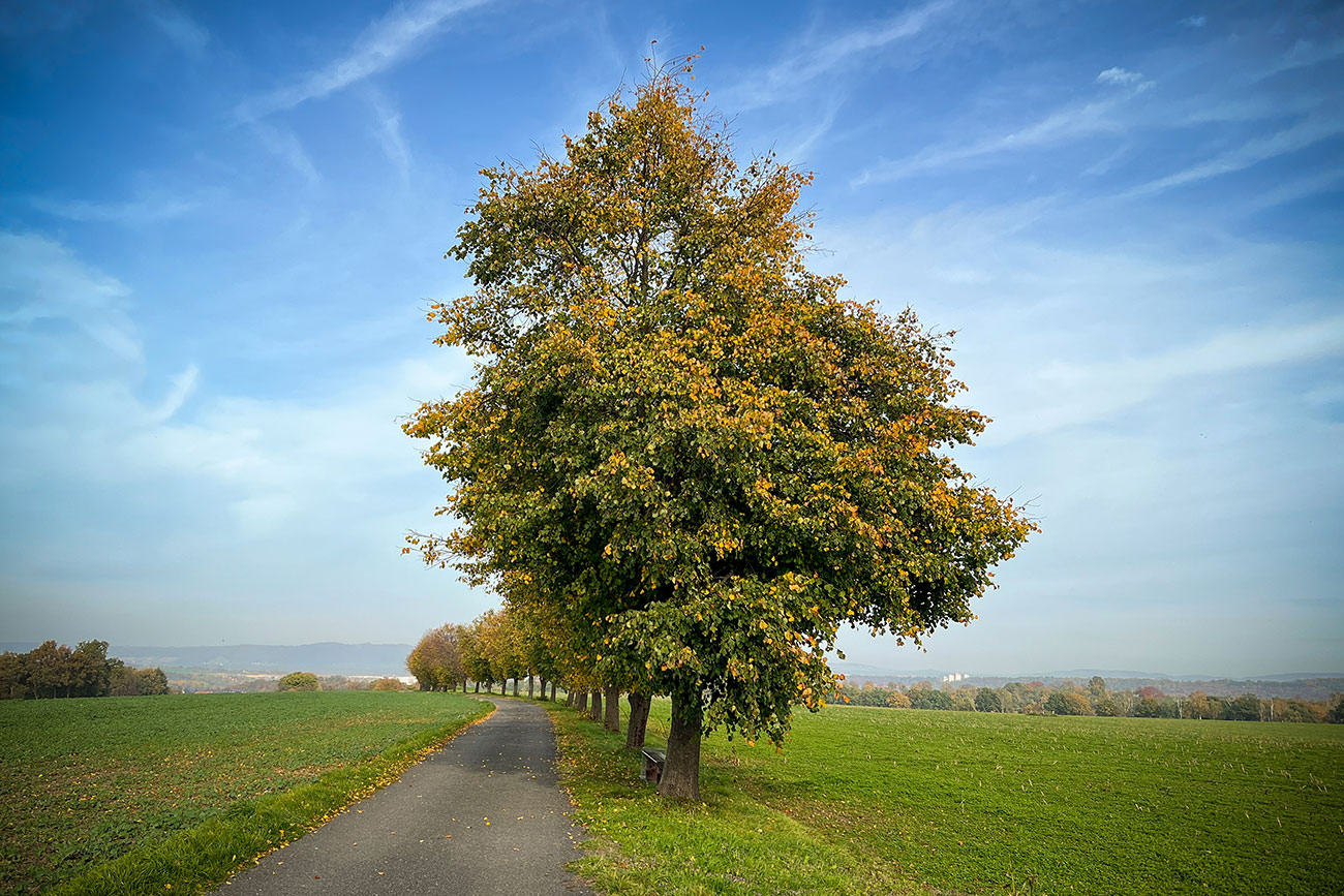 Zum Samstag sind wir nahebei spaziert (bei Dohma, das liegt quasi nebenan und ist in fünf Minuten erreicht). Nicht allzu weit und klein, aber fein. Im ausgehenden Winter '21 sind wir die Runde schon einmal gegangen und bereits damals reifte der Plan, die Landschaft auch einmal im Herbst zu erkunden. Und das lohnt sich durchaus.