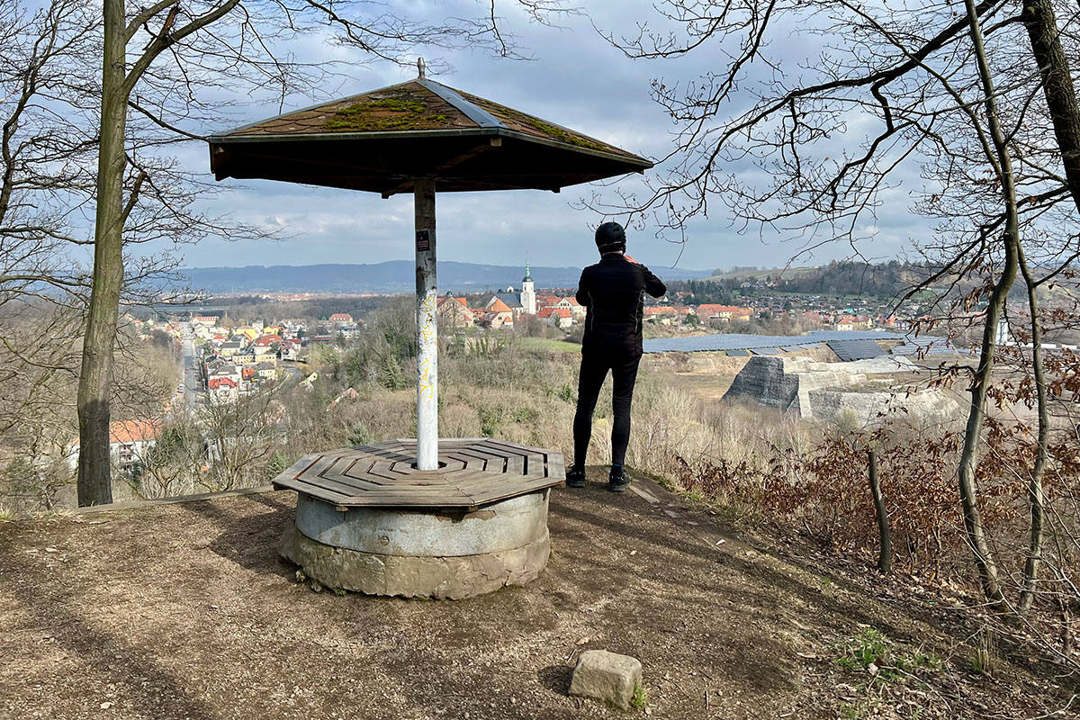 Ein bemerkenswerter Rundweg führt durch das Landschaftsgebiet. Dazu startete ich heute am historischen Marktplatz von Dohna (die Kirche, die Postmeilensäule, der Fleischerbrunnen!) und lief hinauf zur einstigen Burg Dohna, an die heute nur noch der im 19. Jahrhundert zum Andenken an die verfallene Burg errichtete Rundturm erinnert. Vom Burgberg ging es dann auf schmalem Pfad und steil hinunter uns Müglitztal.