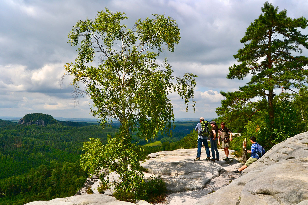 Von dort haben Interessierte einen großartigen Rundblick auf die Sächsische und die Böhmische Schweiz. Man schaut zur Gänze über Hinterhermsdorf und auf das anbei gelegene, bemerkenswerte Funkfeuer zur Flugsicherung.