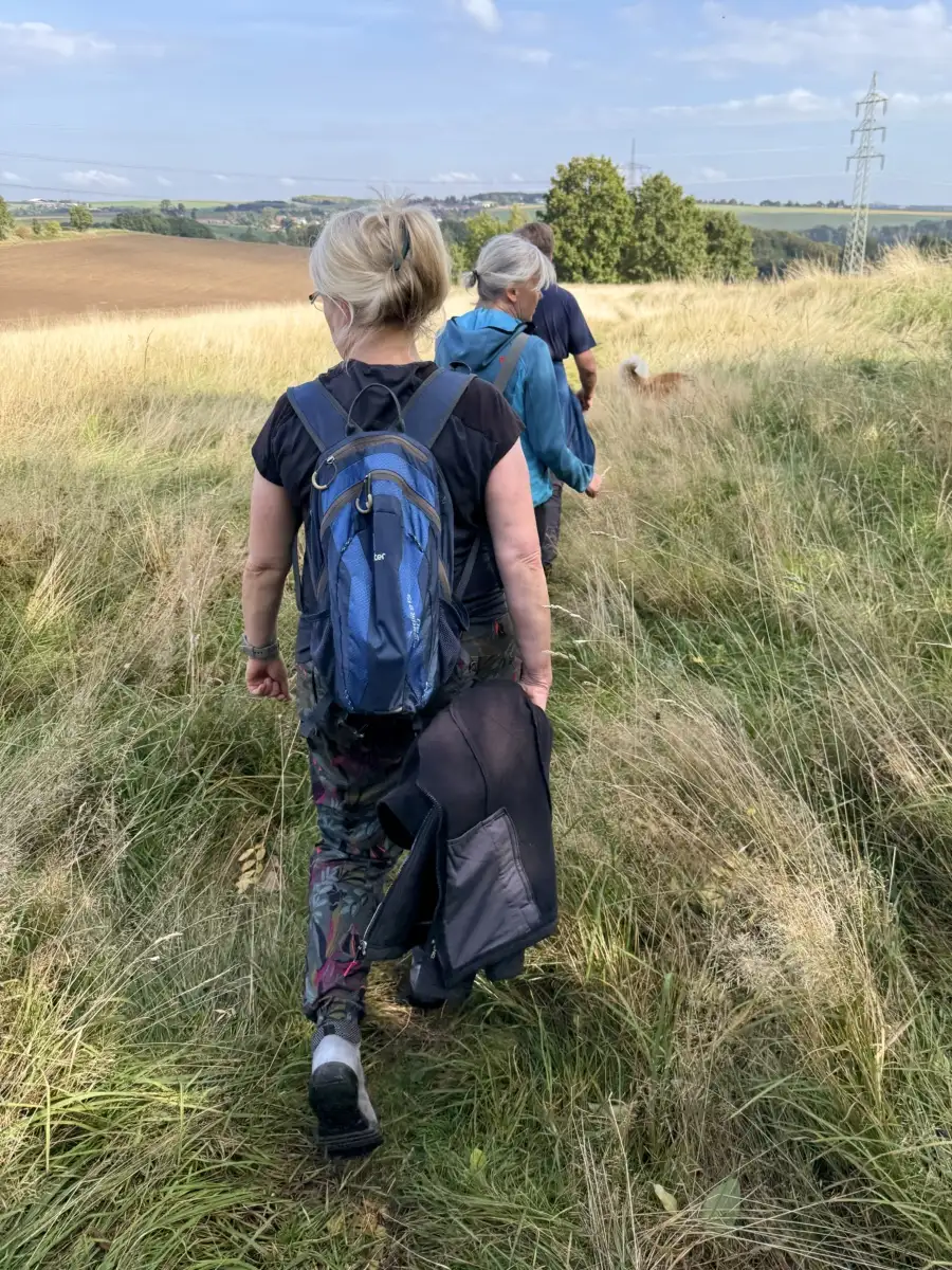 Das Wetter natürlich, ein wunderschöner Tag im frühen Herbst. Der Weg am Fluss und der freundliche Fliegenfischer, der gerade eine untermaßige Forelle zurücksetzte und ein ausgiebiges Fachsimpeln zum Thema Fliegenfischen auslöste. Die weiten Blicke über das uralte Bergbaugebiet. Keine Stechfliegen, keine Mücken. Überhaupt der über Stunden anhaltende Schwatz mit lieben Freunden. Und der stets gutgelaunte Hund.