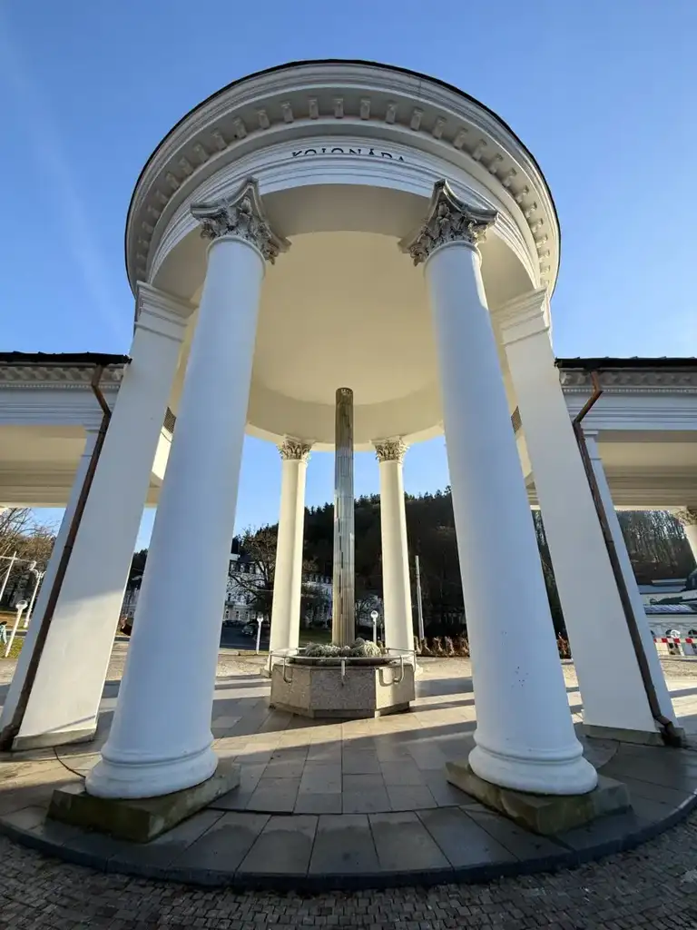 Zum traditionsreichen Marienbad (Mariánské Lázně) hinüber war es nur ein Katzensprung. Die Stadt ist bekannt für ihre Mineralquellen, die prachtvolle Kurarchitektur und weitläufige Parkanlagen. Besonders sehenswert sind die Singende Fontäne (leider nur im Sommer) an der Kurkolonnade, die neubarocke Kolonnade und die zahlreichen historischen Kurhäuser.