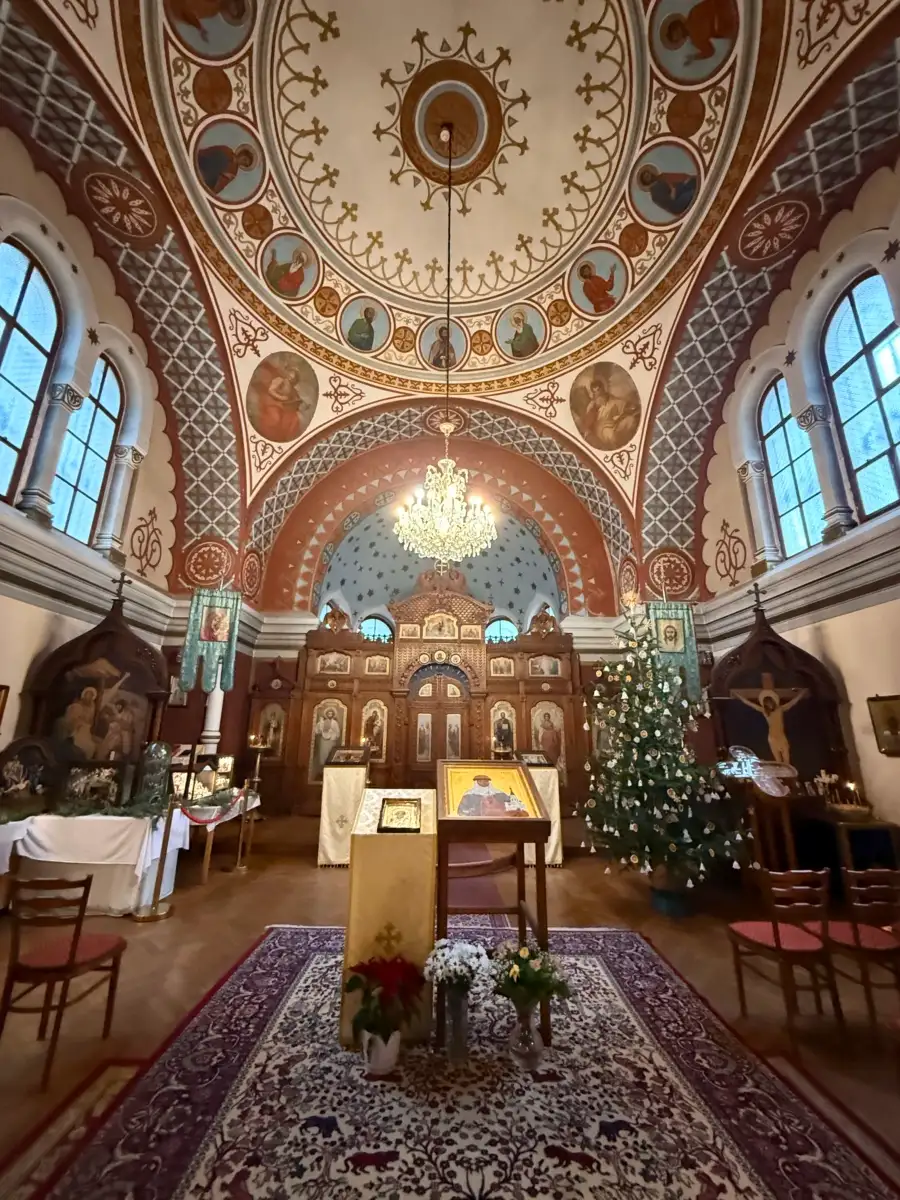 Am letzten Tag galt es wieder gen Heimat zu fahren – verbunden mit einer Stippvisite in Karlsbad, das ohnehin auf der Strecke lag. Dazu parkten wir am Stadtzentrum und flanierten ausgiebig im hochherrschaftlichen Zentrum des wahrhaft mondänen Kurbades. Letztlich haben wir sämtliche Kolonnaden, einige der teils über 60 bis 70 Grad heißen Quellen und natürlich auch mit dem Sprudel (Vřídlo) die stärkste derselben gesehen, die bis zu 14 Meter in die Höhe schießt und mit einer Schüttung von 2000 Litern pro Minute aufwarten kann. Dazu kamen der Weihnachtstrubel und die auch im Winter zahlreichen Besucherinnen aus aller Herren Länder, allesamt (uns eingeschlossen) erwartungsgemäß mit ihrer Schnabeltasse anbei.