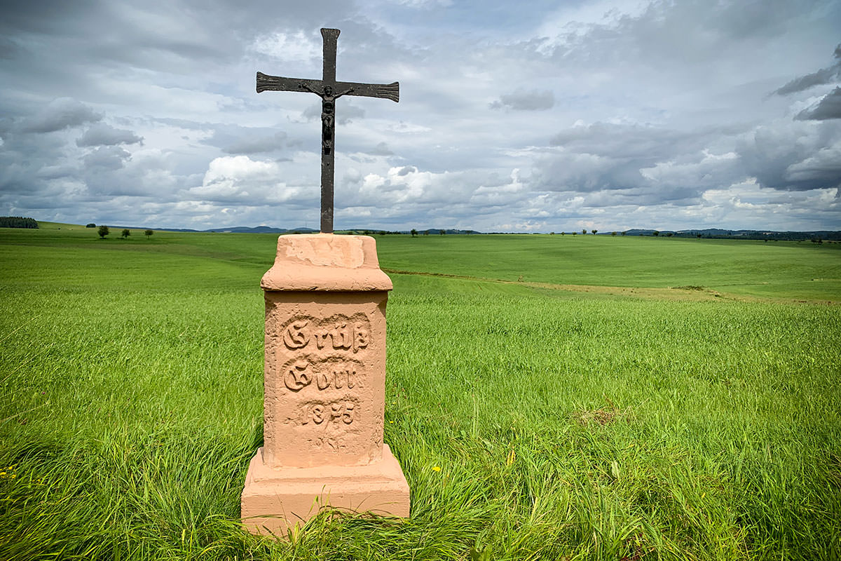 Die Maare, geschwungene Höhenzüge und steile Kerbtäler, jede Menge Wasser und (überwiegend) Laubwald prägen die Landschaft. Dazu wird Ackerbau betrieben, der vor allem. Viele Stoppelfelder im August. Nur selten bekommt man ein paar Kühe, Pferde oder Schafe zu Gesicht.