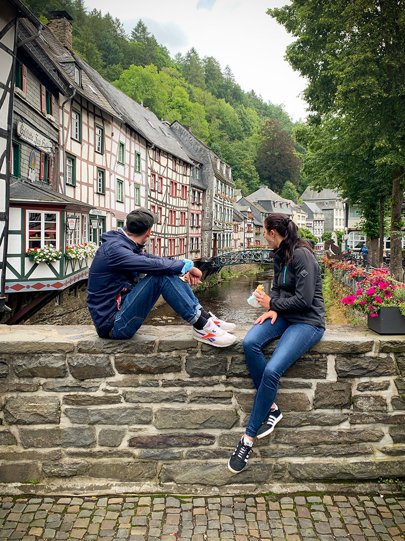 Und Klärchen meinte es gut mit uns. Also sind wir gewandert und geradelt, landauf und landab und an jedem Tag, waren an den Maaren und haben in Höhlen und auf Burgen geschaut. Dazu kamen noch die Mosel und die Rur – in Cochem (die Reichsburg!), Bernkastel-Kues und Monschau wurde trefflich spaziert.