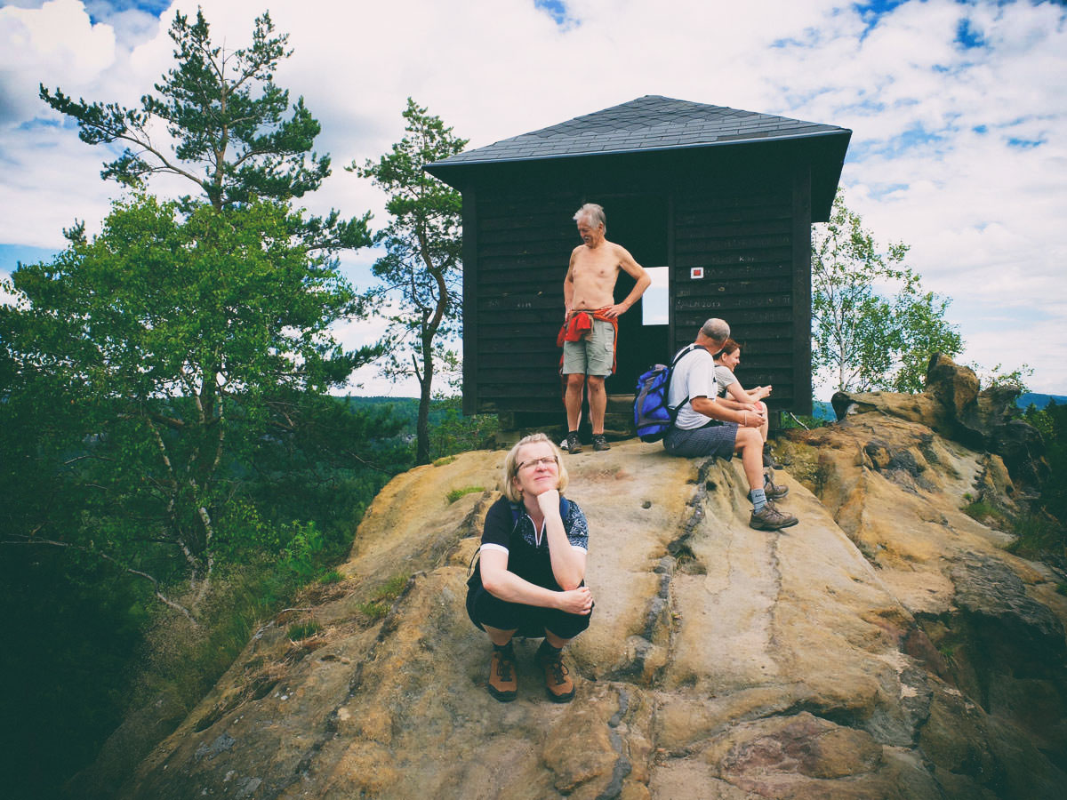 Die Aussichtsfelsen sind alle für sich attraktiv (trotz schlechter Fernsicht heute). Als schönsten möchte ich dann aber doch den Rudolfstein benennen, auf dessem schmalen Gipfel sich nur wenige Menschen zugleich tummeln können. Hier schaut man tatsächlich weit in alle Himmelsrichtungen - über die Böhmische Schweiz und bis ins Kreibitzer Gebirge hinüber.