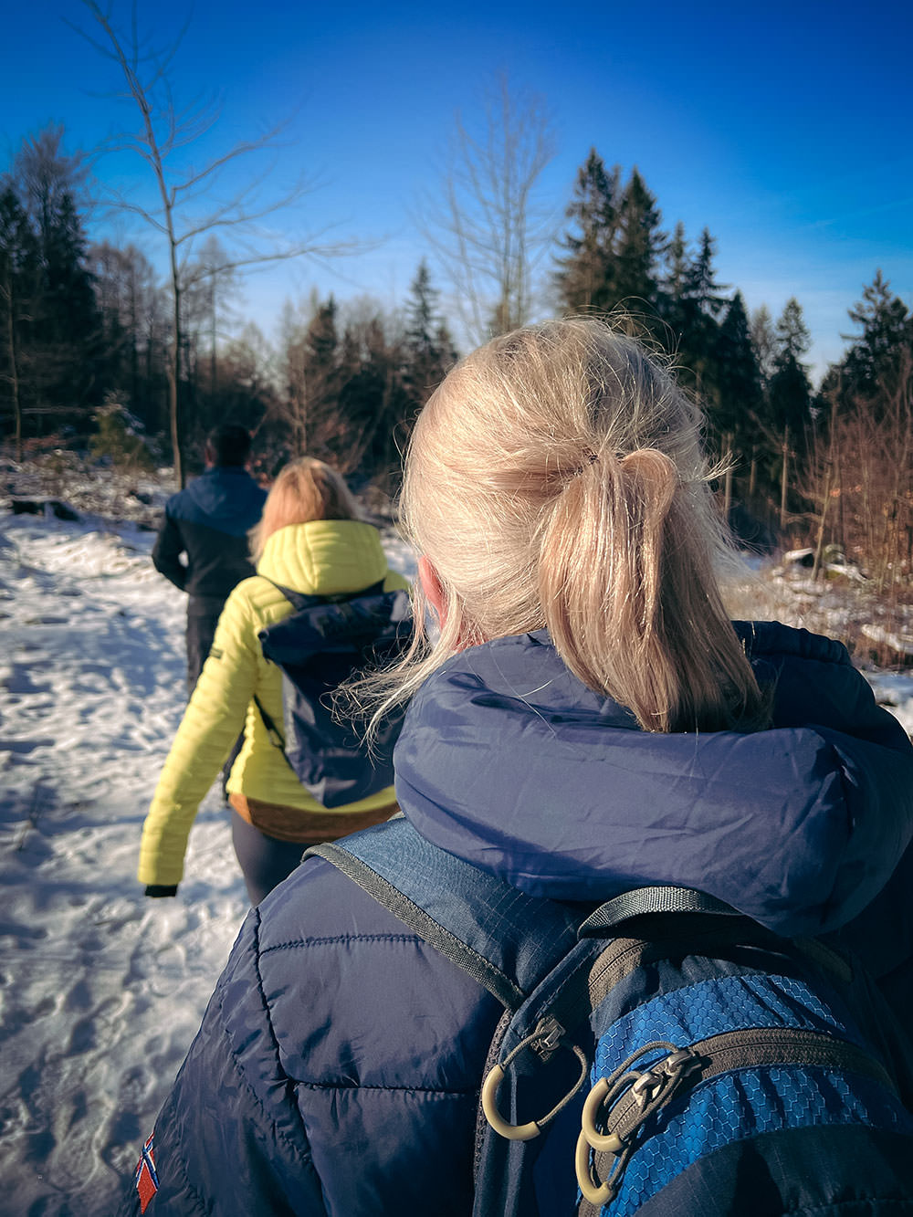 Winterwandern war angesagt. Und es galt, um und auf den Ungerberg zu laufen. Der liegt bei Neustadt in Sachsen, ist stolze 537 m hoch und zählt bereits zum Lausitzer Bergland. Ein 33 m hoher Aussichtsturm ziert den rundum bewaldeten Gipfel. Die Route war – mit dem Parkplatz am Erlebnisbad als Start- und Zielpunkt – denkbar einfach. Es brauchte zunächst einige Schritte im Ort, um, vorbei an Bahnhof und Freibad, in das offene Land zu gelangen. Der Lindenweg brachte uns im Anschluss hinüber nach Rugiswalde (wir gingen mit der Uhr).
