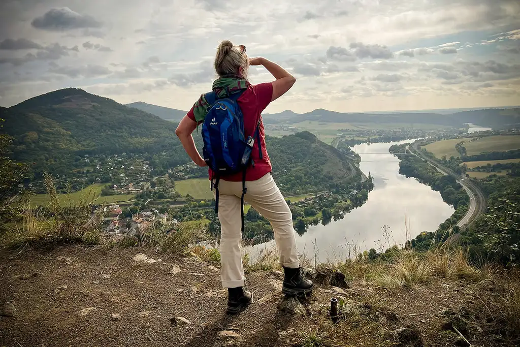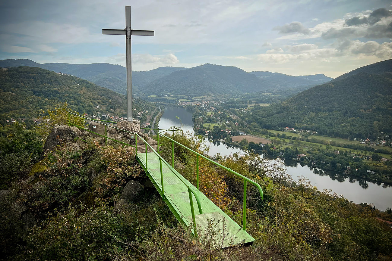 Die mit Abstand schönste Aussicht über das Elbtal bietet bekanntermaßen der hoch über dem Ort Salesel (Dolní Zálezly) gelegene und mit einem Kreuz geschmückte Felszacken des Müllersteins. Er präsentiert einen hervorragenden Ausblick auf den Elbefluss, der sich dort imposant um die Gipfel des Böhmischen Mittelgebirges windet. Seit zwei Jahren hatten wir die Wanderung dorthin im Sinne, doch stets kam etwas dazwischen. Zumeist waren es gesundheitliche Probleme oder auch das Wetter – Sie kennen das, irgendwas ist immer. Gestern hat es nun geklappt, der markante Aussichtspunkt wurde endlich von uns erlaufen.