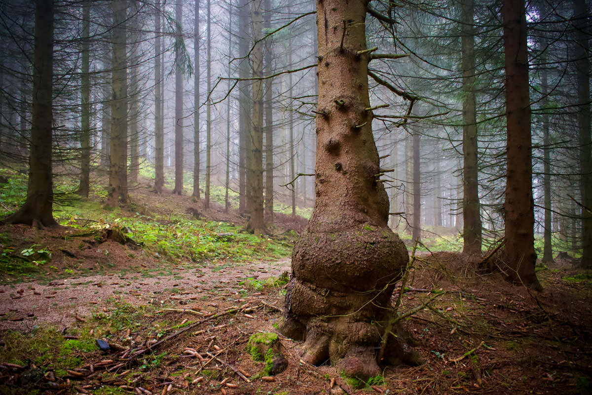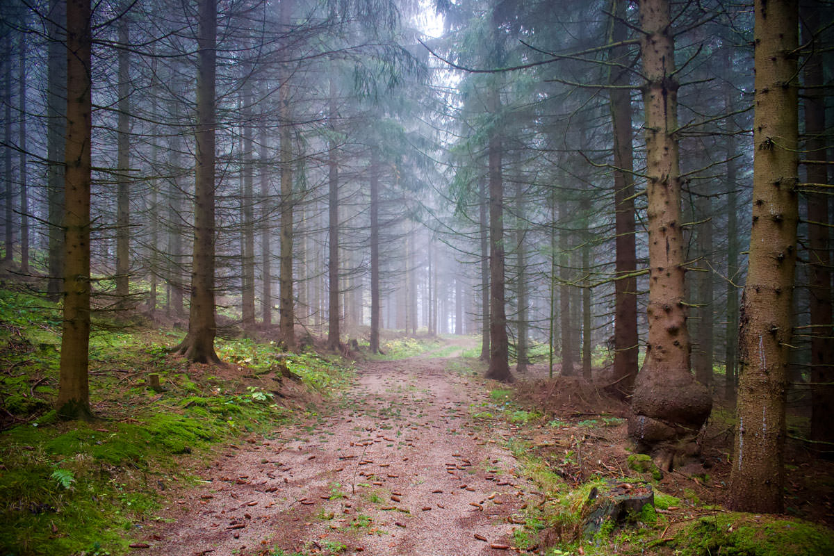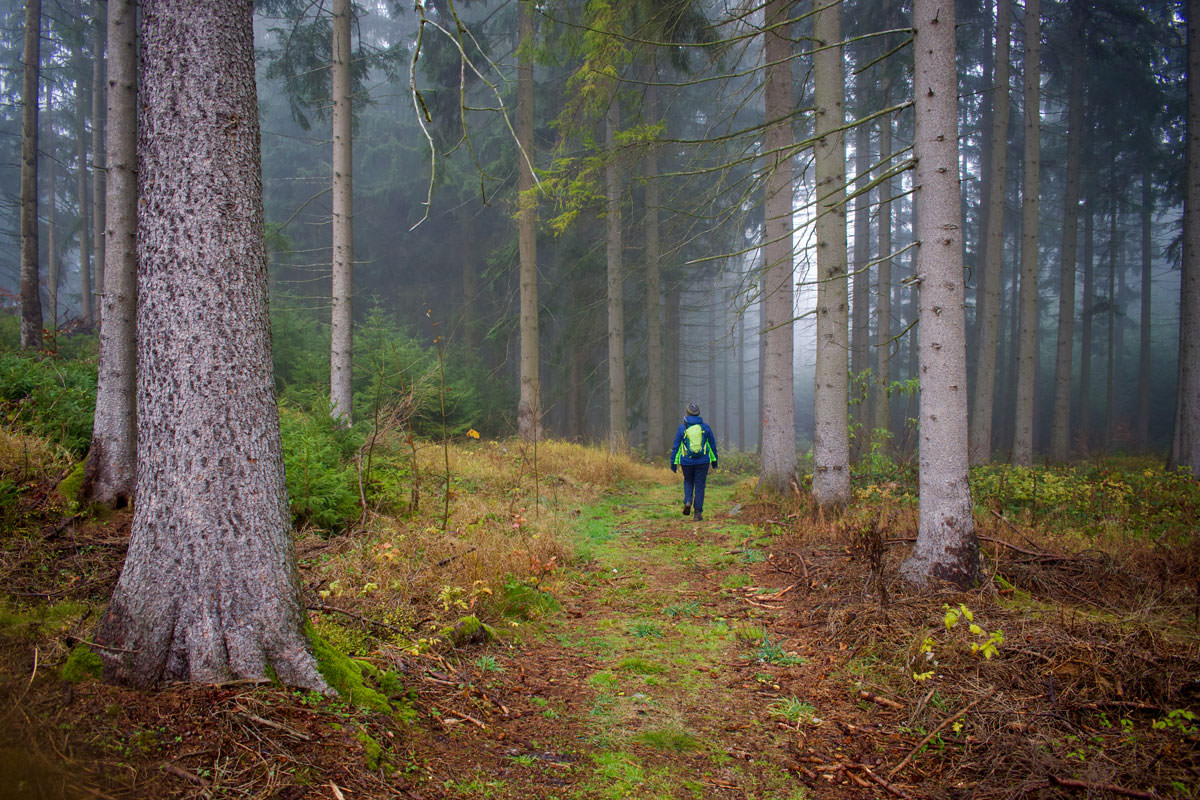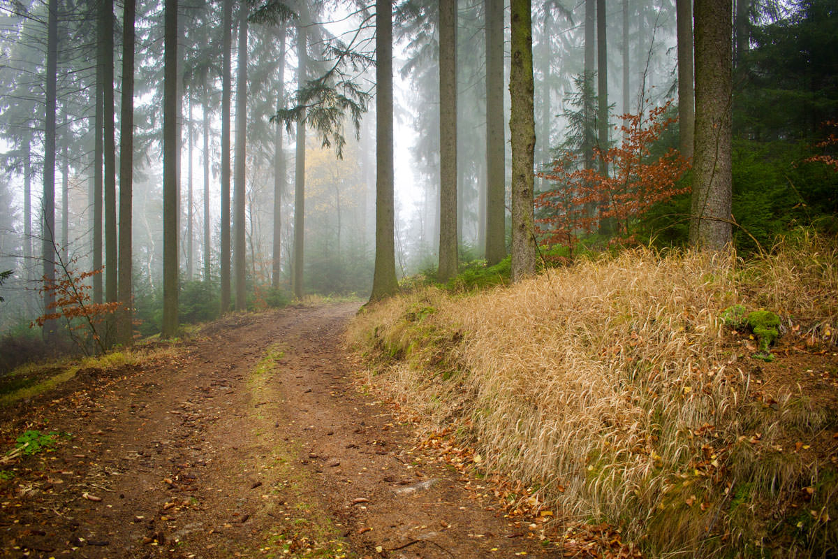 Nebelfeuchtes Nebelgrau, inmitten des Novembers. Die Wolken hängen tief und fest und der Wald ist einfach nur der Wald. Menschenleer und mucksmäuschenstill.