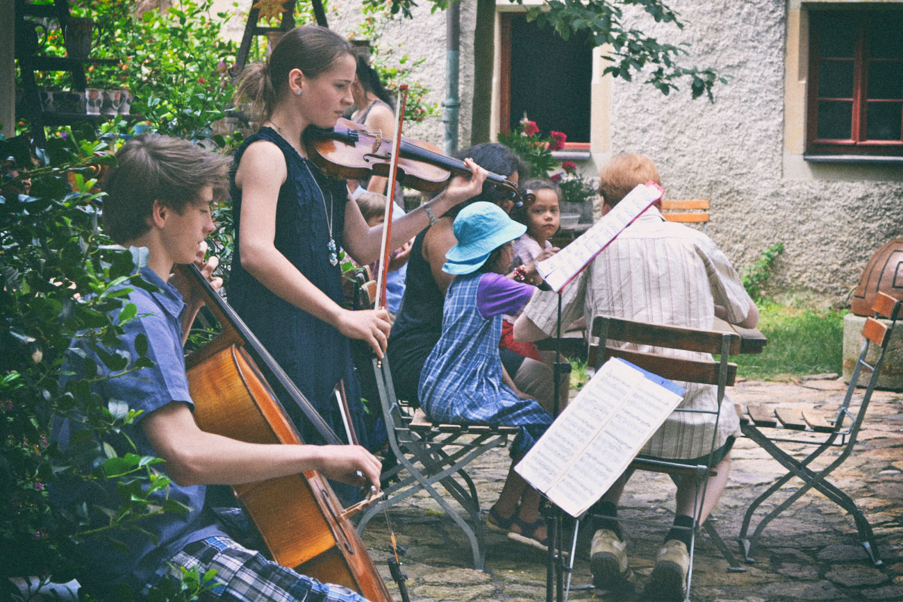 Weiter ging es - immer entlang der Hangkante - nach Batzdorf hinein. Nur kurze Zeit später waren wir schon am Schloss, in welchem dieser Tage die Batzdorfer Pfingstspiele stattfanden. Zusätzlich zum bunten Programm ist hier der ganztägig geöffnete Schlossmarkt zu erwähnen, der bei sehr angenehmer Atmosphäre zum Bummeln und Verweilen einlud. Vom Batzdorfer Schloss ging es dann weiter zum sogenannten Totenhäuschen, von welchem sich ein schöner Blick hinab in das Elbtal bietet. Das ehemalige Lusthäuschen steht an einem urigen Platz und ist von uralten Linden umgeben.