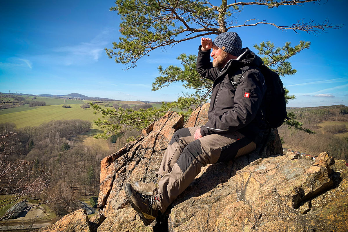 Zuerst der Samstag. Eine kleine Runde am Steilhang bei Schlottwitz. Der Eibenwald, die Tausendjährige, der Panoramablick am Lederberg. Dazu die Hirschsteigkoppe. Wo einst der Jägersmann vom Felsen stürzte – als er dem Hirsch nachsetzte. Und überhaupt: Die schmalen Pfade, die schroffen Klippen, der Weitblick bis zu dem noch immer mit Schnee bedecktem Erzgebirgskamm – das ist schon bemerkenswert. Ein ums andere Mal.