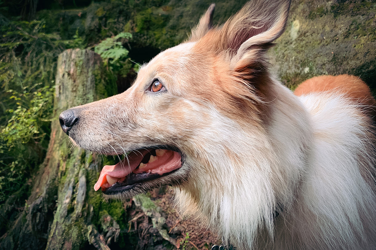 Vorbei am Milchhof Fiedler (die Milchtankstelle, die Kühe und die Kälberboxen!) liefen wir erst oberhalb des Dorfes gen Osten und dann links hinauf in die Wiesen. Die Buschholzstraße war schnell erreicht – es ging nun rechter Hand in den Wald hinein. Der Abstieg in den Teufelsgrund ist ausgewiesen. Es ist unbedingt ratsam, das enge Tal mit den feuchten, moosbewachsenen Felsen zu erlaufen, denn es ist wahrlich wildromantisch. Am Abzweig in die Teufelsschlüchte wird es etwas freundlicher. Wir, die wir gestern in Begleitung unterwegs waren (der verrückte Hund war auch dabei), verweilten kurz und ließen uns nieder – es galt zu rasten, zu schwatzen und auf einen Geburtstag anzustoßen.