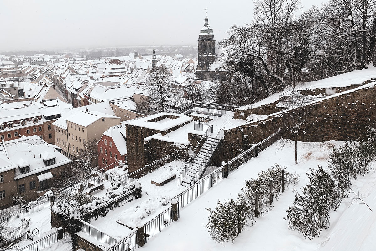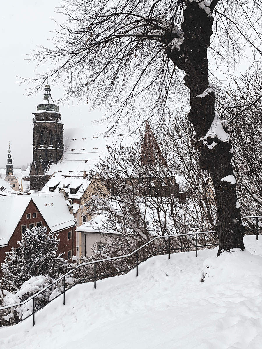 Mit dem Wochenende kam der Schnee und mit dem Montag kam der Frost. General Winter hat die Stadt im Griff. Und der Winterdienst - inzwischen - auch. Der Hauswart schob zweimal am Tag und der Schloßberg ward zum Rodelberg.