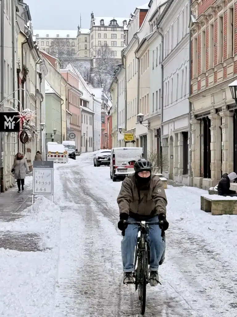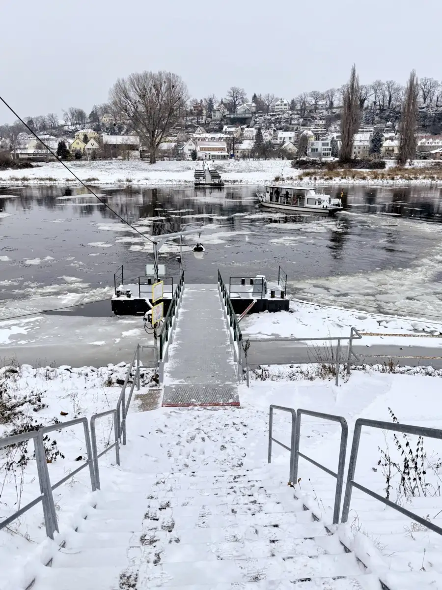 Schnee in Pirna und "Böhmische Kuchen" auf der Elbe.