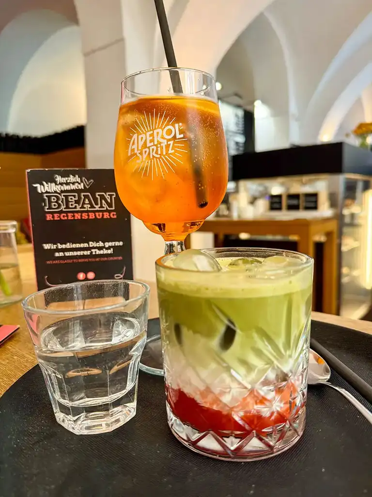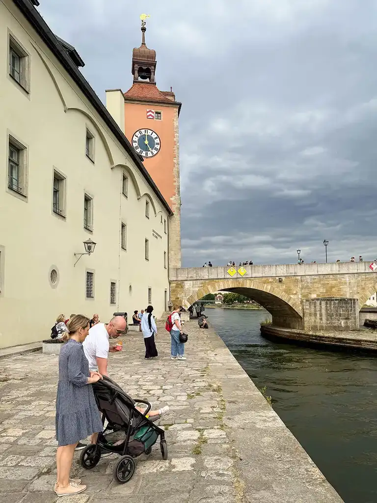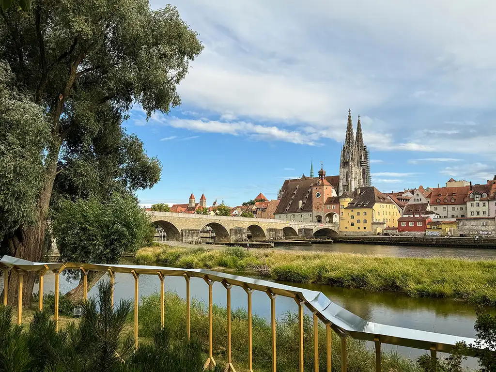 Die Kilometer, die wir entlang der alten Fassaden spazierten, habe ich nicht gezählt. Es müssen etliche gewesen sein – schließlich kann Regensburg mit einer weitläufigen und sehr gut erhaltenen Altstadt aufwarten. Wir ermittelten jedwede Gasse und (beinahe) jedes Lokal, einen Espresso hier, das Eis dort und ein frisch Gezapftes auf der anderen Seite, hin über die Donau und zurück über den Fluss und überhaupt: die Steinerne Brücke, der Dom natürlich und die versteckt gelegene Maria Läng Kapelle – all das musste in Ruhe erlaufen und betrachtet werden.