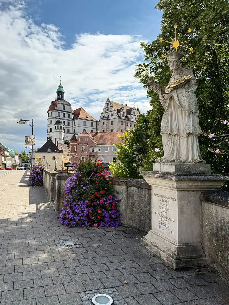 Neuburg an der Donau ist heute eine 30 000 Einwohnerinnen zählende, ehemalige Residenzstadt - malerisch am Fluss gelegen. Man unterscheidet zwischen der Ober- und der Unterstadt, wobei die Obere Stadt die historische Altstadt meint. Also mit dem Renaissanceschloss, der Hofkirche und dem Karlsplatz. Kurz: Dort oben steht sehenswerter Bayerischer Barock en masse - man kommt nachhaltig ins Staunen ob dieser Pracht und Fülle.